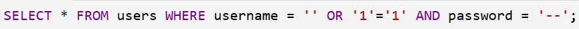 In this case, '1'='1' is always true, and the remainder of the query is commented out. By doing this, authentication is essentially circumvented, allowing the attacker to log in without legitimate credentials.
