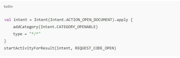 For accessing documents or user files, use an Intent like: